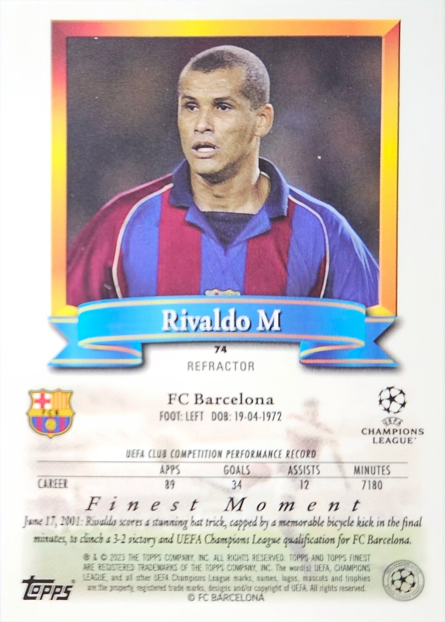 Rivaldo - Topps Finest Flashbacks UEFA Club Competitions 22/23